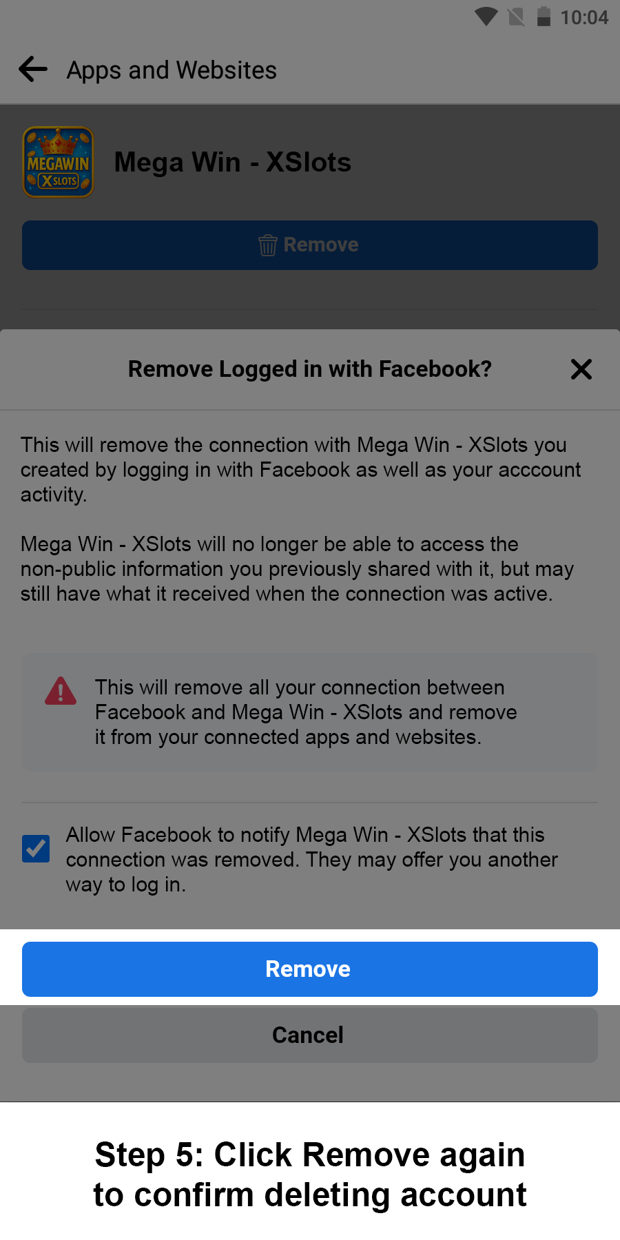 Also, if you want to delete your game activities for Mega Win – XSlots you can remove your game activities by the following instructions.